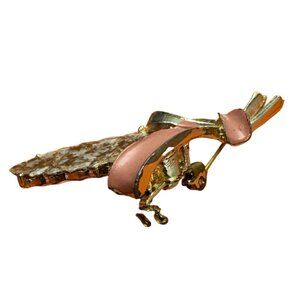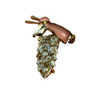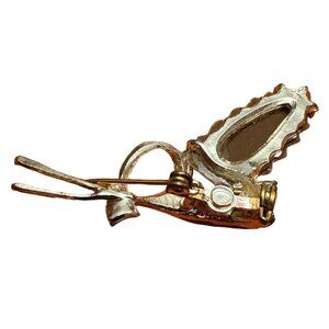 This unbranded vintage-style brooch pin features a unique leaf bow design. Embellished with pink and gold-toned rhinestones, it adds a retro touch to any outfit.