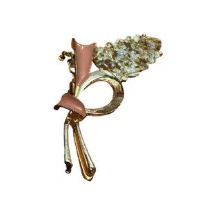 Vintage Pink and Gold Tone Rhinestone Leaf Bow Brooch Pin Jewelry Accessory