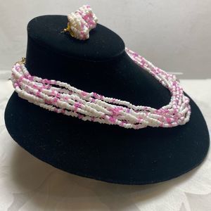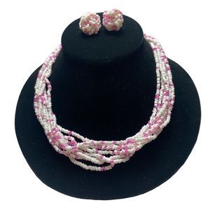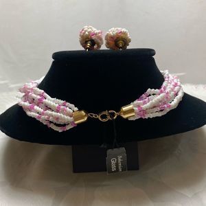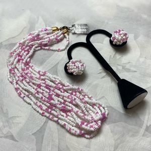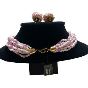 Vintage Pink and White Bohemian Glass MultiStrand Necklace Set NWT