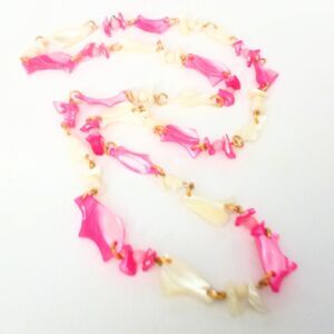 Vintage Pink and White Mother of Pearl Shell Link Beaded Necklace