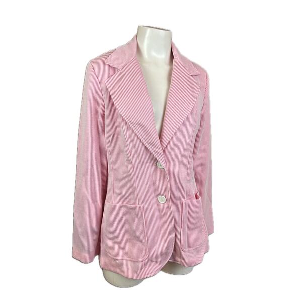 Vintage Pink and White Stripe Blazer Shirt Jacket / Women’s Large
