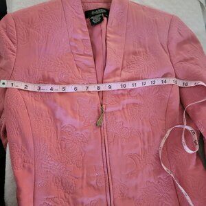Vintage Pink silk Floral Embroidered Blazer Jacket With Full Zip & Long Sleeves