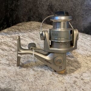 Vintage Pinnacle Deadbolt Spinning Fishing Reel. Made in Korea. Has Shimano 1000 spool. Balanced rotor. Silver and Gold. Good vintage condition.