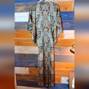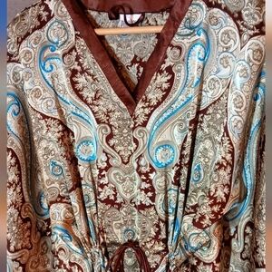 Vintage Pinnacle robe/kimono style nightgown M Brown and blue