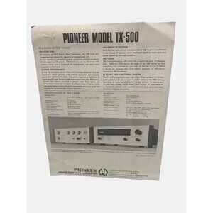 Original Pioneer TX-500 and TX-900 spec sheets / brochures for Hi-Fi enthusiasts. Detailed specifications and features, ideal for collectors or vintage audio equipment sellers. Each sheet is approximately 11" x 8.5". They are from the early 1970s.
