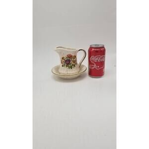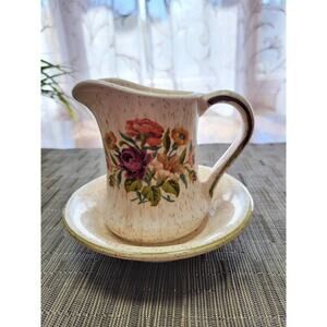 Vintage Pitcher Bowl Small Set, Speckled Cream Floral, Farmhouse Decor