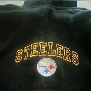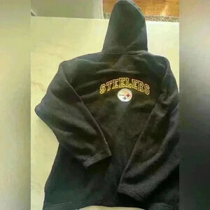 Vintage Pittsburgh Steelers Fleece Lined Black Hoodie Men's size Large. Has broken metal zipper pull (see pictures) otherwise great condition.