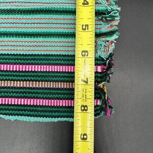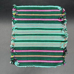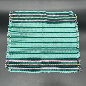 Vintage Placemat and Napkin Set Cotton Fringe Green Pink Stripes Setting for 6