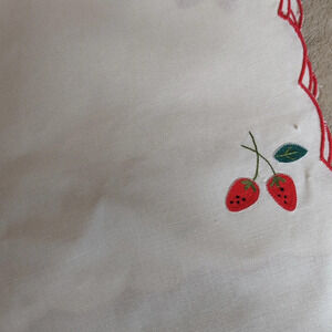 Dainty Feminine Strawberries Embroidery Linen Tea time Summer Lunch Picnic