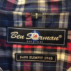 Vintage Ben Sherman dress shirt with red and blue plaid. Men's Size small.