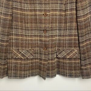 Plaid 70s style work blazer. Perfect academia look. Brown, tan, black and cream. Size 14