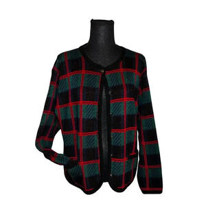 Vintage Plaid Button Front Cardigan Tally Ho Women’s XL, perfect Christmas sweater
