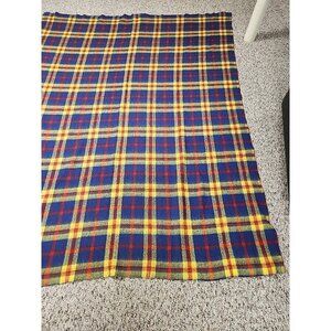 This Vintage Plaid Camp Blanket is a nostalgic piece made of wool in a classic multicolor plaid pattern. Measuring 78x86 inches, this blanket is perfect for picnics or camping trips, adding a cozy and stylish touch to your outdoor adventures. Its vintage style and durable wool material make it a sought-after collectible for those who appreciate retro textiles and quality craftsmanship. Good Condition. Any questions feel free to ask.