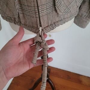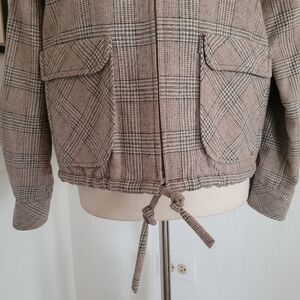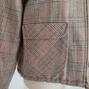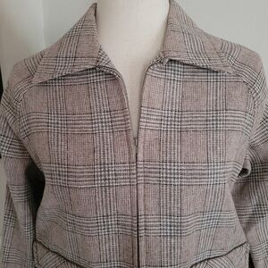 Vintage Plaid Cream Brown Lightweight Zip Up Jacket Size Medium