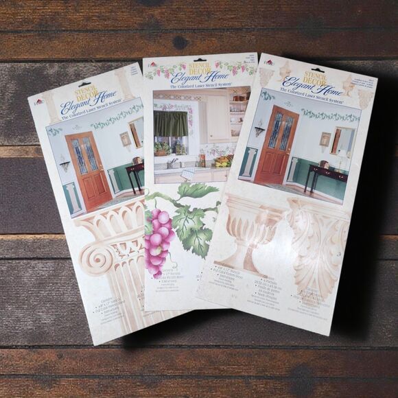 Take a trip back to peak 1990s home décor with this vintage stencil set from Plaids Elegant Home collection. Inspired by European interiors, these designs bring French country charm, Tuscan warmth, and Greco-Roman detail together in one perfectly matched set. If you ever owned a sponge brush and a dream these were the look.