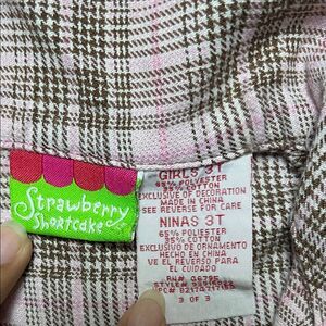 Vintage Plaid Strawberry Shortcake Pink Kids Shirt with Embroidered Patch| 3T