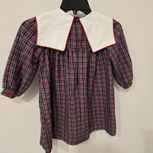 Vintage Plaid Toddler Dress with Snowman Embroidery