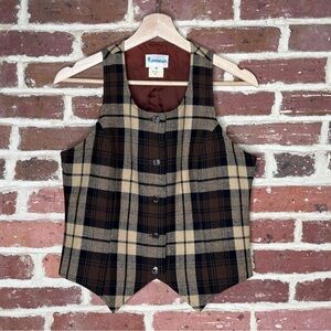 Vintage wool vest in neutral toned plaid.