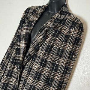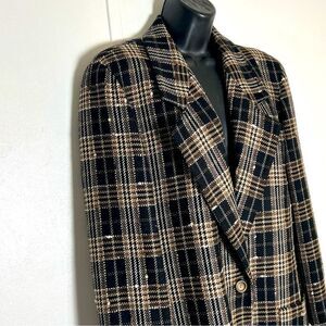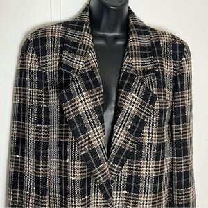 Vintage Plaid Wool Blazer longline Classic Jaeger Relaxed Brown Black Tweed 8
