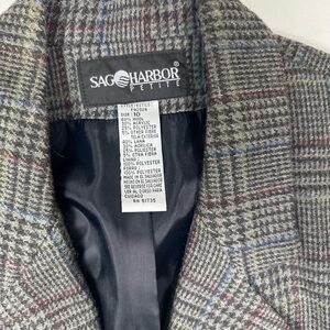 Vintage Plaid Wool Blend Blazer Size S/M Gray Classic Preppy Dark Academia