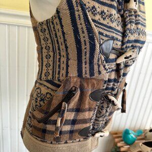Vintage Plaid Wool Blend Toggle Vest Small Blue & Brown