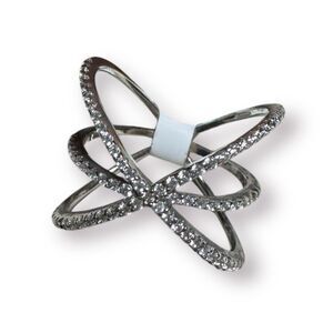 Vintage Plain & CZ Reversible Triple Band Ring 925 Sterling Silver Size 9