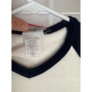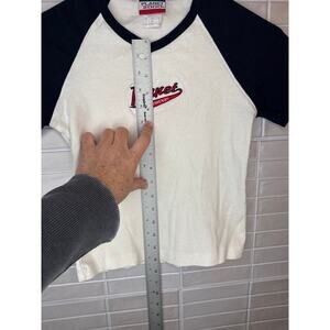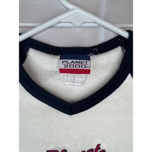 Step back into Y2K style with this retro Planet 2000 Planet Hollywood baseball tee! Featuring classic navy blue sleeves and a white body, this sporty top showcases the iconic Planet Hollywood logo across the chest and “Las Vegas” on the sleeve. Size small, with a fitted cut and soft cotton blend feel. Perfect for fans of vintage Vegas style or nostalgic graphic tees.