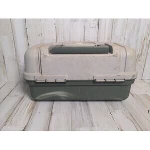 Vintage Plano Tackle Box 1 Extending Tray Compartments, green & gray.
