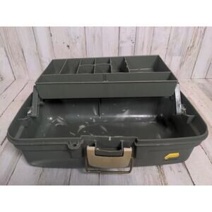 Vintage Plano Tackle Box 1 Extending Tray Compartments, green & gray