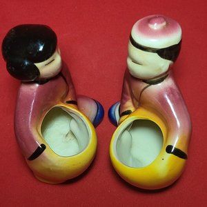 Vintage Planters Toothpick Holder Chinoiserie Chic Pottery Asian Oriental Figure Ceramic