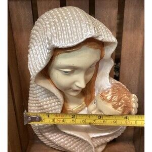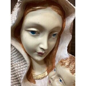Vintage Plaster Chalkware Baby Jesus & Virgin Mary Wall Hangings Painted 6"