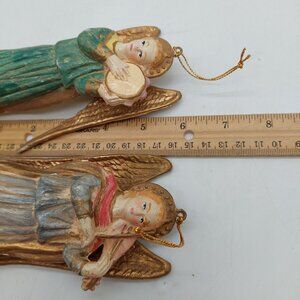 Vintage Plastic Angels Playing Musical Instruments Set Of 2 READ