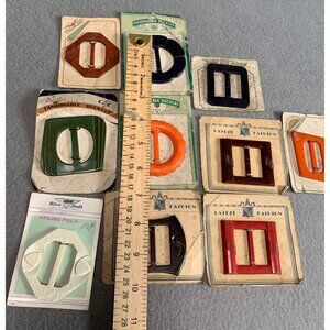 Colorful and varied belt buckle collection from Lallett Fashion and others. Ideal for vintage craft projects and fashion accessorizing.