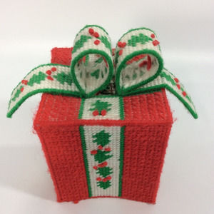 Vintage Plastic Canvas Christmas Gift Tissue Box Cover Holder