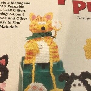 Vintage Plastic Canvas Instruction Booklets Cat Portraits and Poseable Pets
