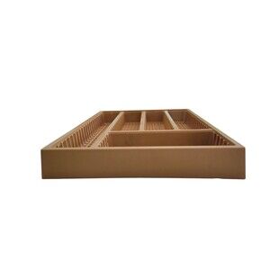 Vintage dark mustard yellow, plastic silverware tray organizer. No breaks, but there are scratches and some stains.