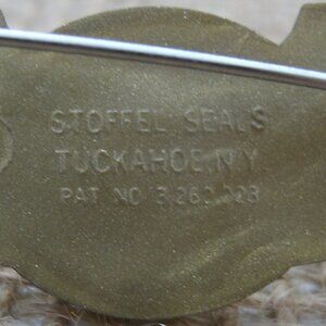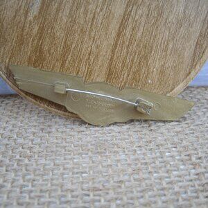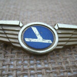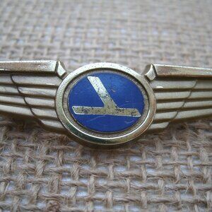 Vintage Eastern Airlines Jr. pilot wings pin. Flat gold plastic with shiny accents. Eastern Airlines logo in center. Simple, non-locking pin back. About 2 1/2 inches long, 1/2 inch high. Made by Stoffel seals. Good vintage condition. No breaks, but does have wear from age/use. A great collectible for anyone into aviation memorbilia.