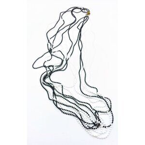 Vintage Plastic Eight Strand Necklace, Hong Kong Black and White Lightweight Super Long Flapper