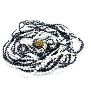 Vintage Plastic Eight Strand Necklace, Hong Kong Black and White Lightweight