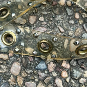 Vintage Plastic Fashion Belt with Large Grommet Holes Studs Gold Belt Buckle