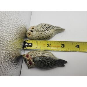 Set of two vintage-style owl refrigerator magnets. These charming plastic magnets feature realistic feather details and expressive eyes (one red, one amber). A perfect accent for rustic, woodland, or farmhouse-style kitchens and an excellent gift for bird lovers.