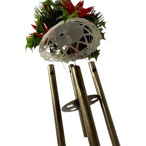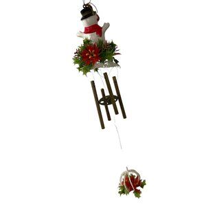 This charming wind chime features a playful snowman adorned with a red scarf and hat, surrounded by festive poinsettia blooms. The design is completed with hanging bells, making it an elegant addition to holiday decor. Ideal for creating a cheerful atmosphere indoors or outdoors.