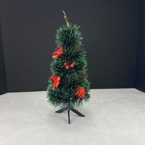 Vintage Plastic Tabletop Christmas Tree Flocked Birds 13 Inch