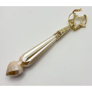 This vintage-style ornament features a faceted teardrop design with a gold-toned star topper. Its timeless elegance adds a touch of sophistication and charm. Ideal for those who appreciate classic beauty, this piece enhances the aesthetic appeal of any space with its delicate details.