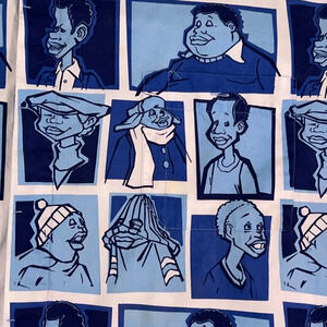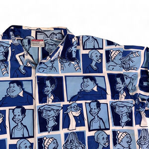 Vintage Platinum Fubu Shirt Blue Fat Albert Allover 90s Y2K Adult XXXL 3XL