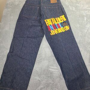 Vintage Platinum Fubu Y2k Fat Albert Baggy Embroidered Navy Jeans Mens 38x34