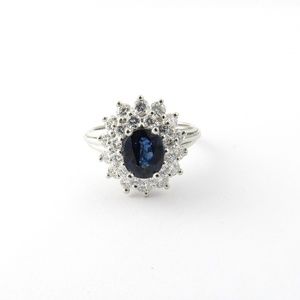 Vintage Platinum Natural Sapphire and Diamond Ring Size 6.75-