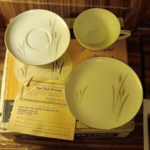 Vintage Platinum Wheat Fine China 4pc place setting in original box