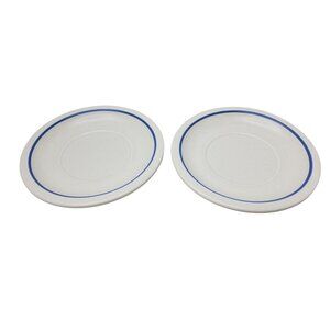 This pair of Platzgraff stoneware plates, adorned with a classic blue rim, evokes a sense of nostalgia. Durable and timeless, they offer both utility and style, suitable for adding a touch of vintage elegance to your table setting.