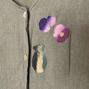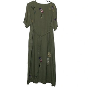 Vintage Play Alegre Hand Painted Green 100% Linen Dress Large (L)
